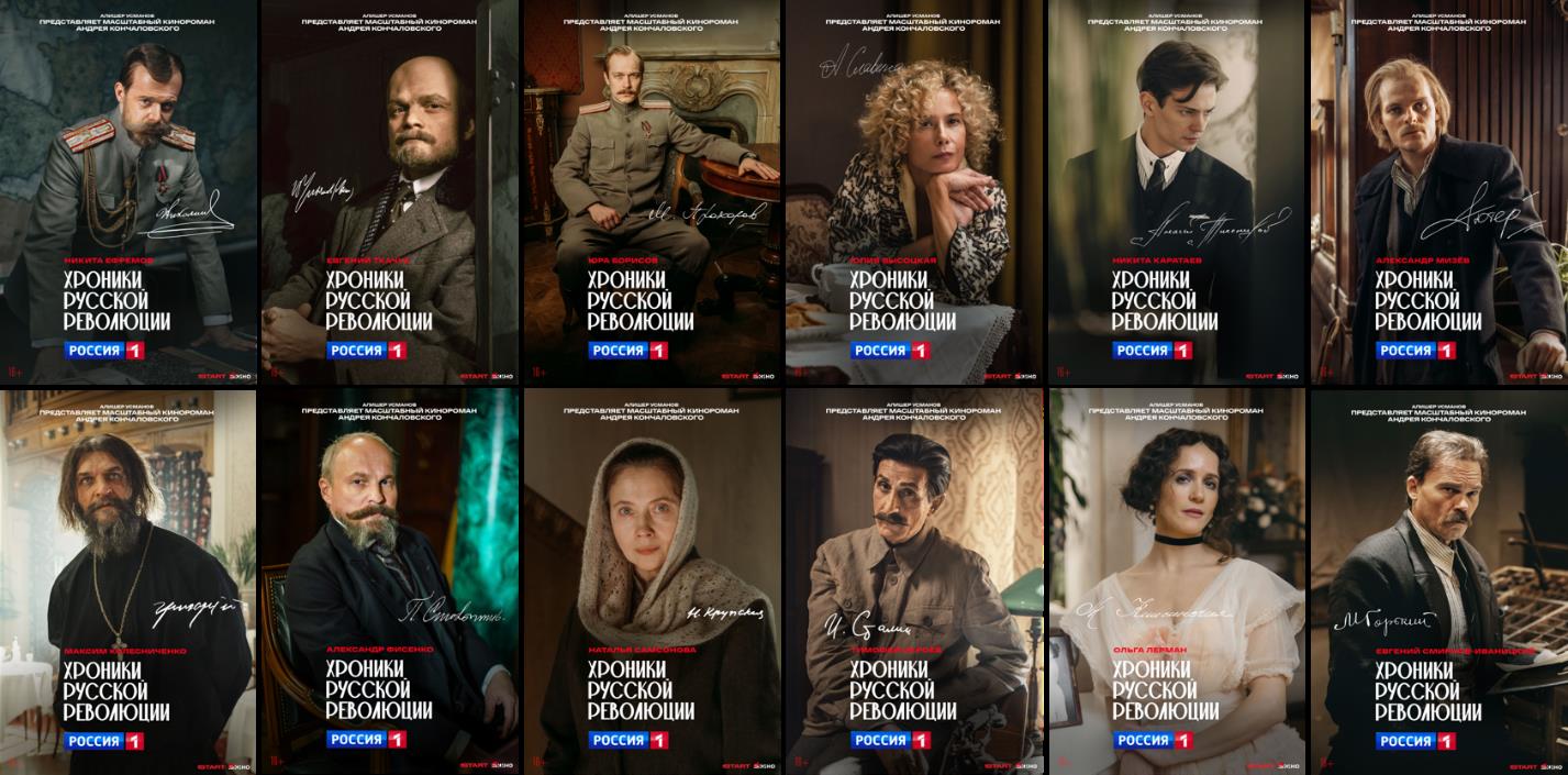 В сериале более 350 персонажей и 157 из них — реальные люди. Представляем вам персонажные постеры главных героев "Хроник русской революции":